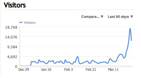 As you can see, the first mini-spike happened on Feb. 12, when the January numbers came in and I was absurdly dead-on with my exchange QHP projection. The huge spike at the end culminated yesterday with Paul Krugman's kind words, and traffic peaked at around 17,900 unique visitors.