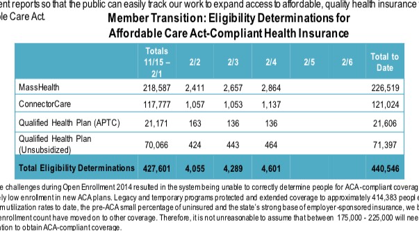 With yesterday's 1,737 QHP determinations, Massachusetts has likely tacked on another 800 QHPs or so, bringing them up to around 117.5K. In order to reach the 170K target I've estimated, they'll have to enroll about 52K in just 11 days, or a whopping 4,700/day.