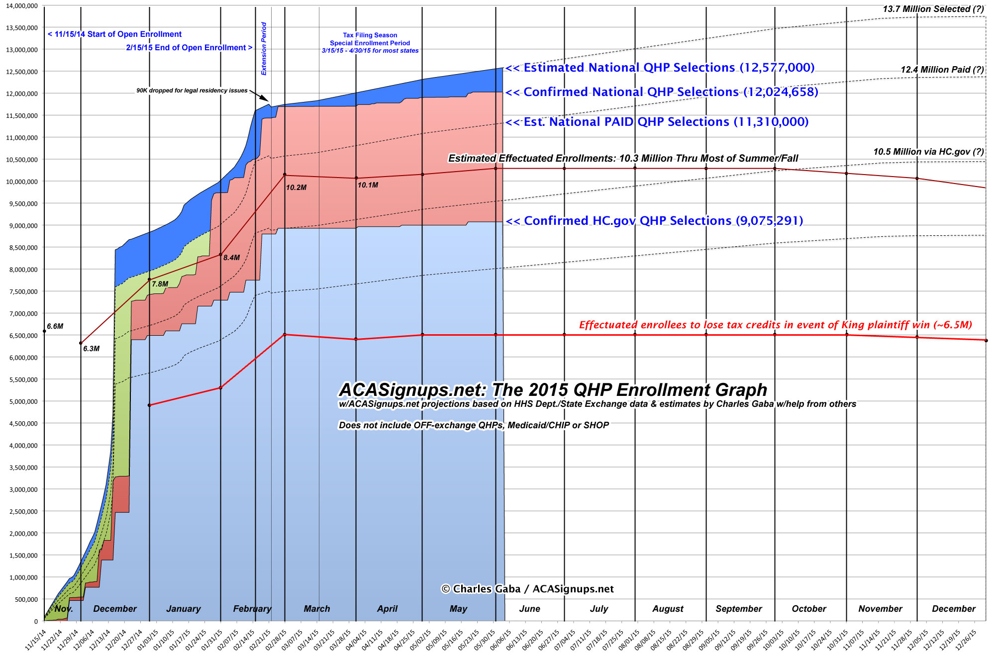 • Otherwise, both Graphs are pretty much the same. I still project that the cumulative number of QHP selections nationally will be around 13.7 million by the end of the year.