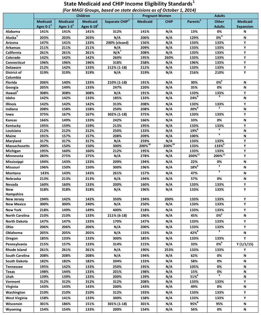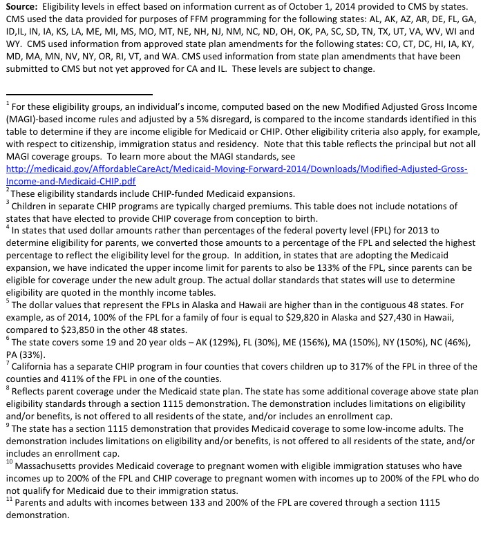 UPDATE 9/8/17: I've updated the eligibility table with the most recent version from the Medicaid website: