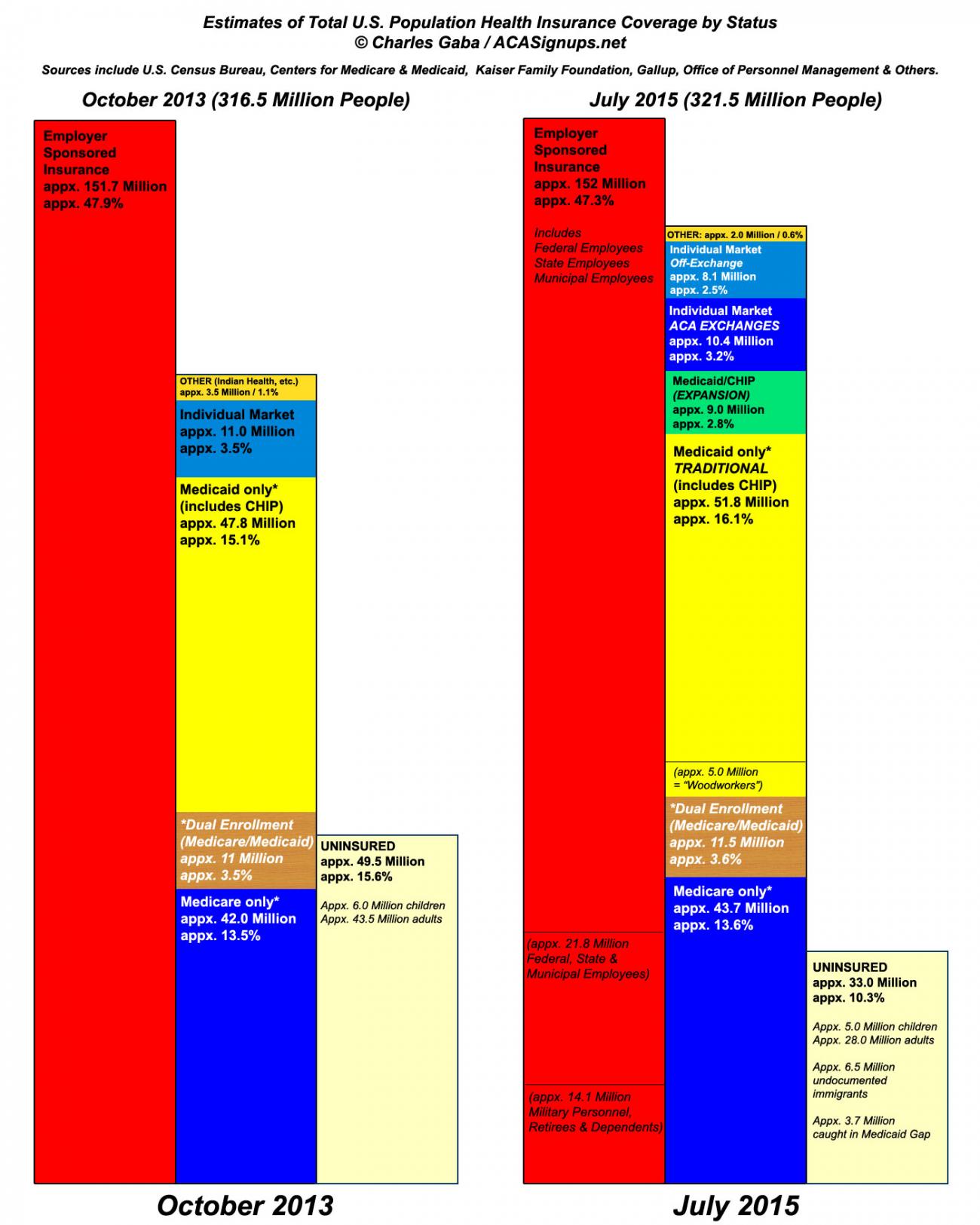 Between this report and the also-just-released Medicaid report, I've revised my total U.S. insurance status estimate graph accordingly: