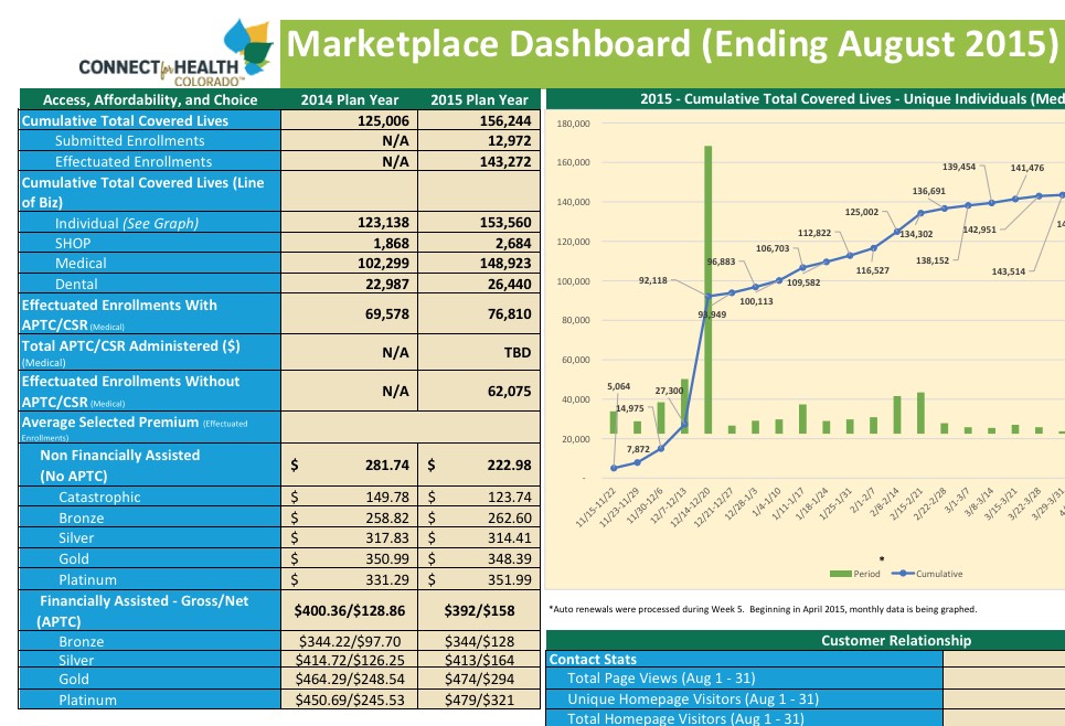 And that trend has continued over the rest of the summer: 76,810 APTC/CSR-receiving effectuated enrollees + 62,075 non-APTC/CSR enrollees = 138,885 CO residents enrolled in effectuated private exchange policies as of the end of August.