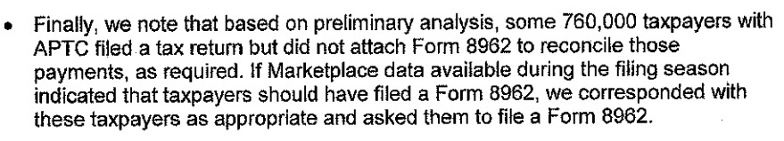 UPDATE: Hoo, boy. Esteban B (who also called this issue to my attention in the first place) has also pointed out another troubling possibility: What if the "710,000" and "760,000" figures refer to the number of tax returns which were never filed/missing form 8962, not the total number of people represented by those tax returns?