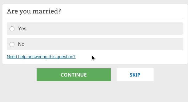 Next, on the "Are you Married" screen, there's an interesting additional link for people who aren't sure of their marital status: