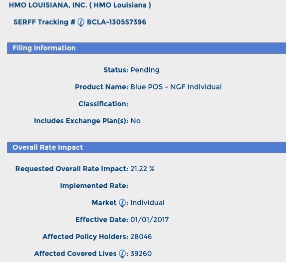 With this in mind, here's how things stack up in Louisiana for the ACA-compliant individual risk pool rate hike requests: