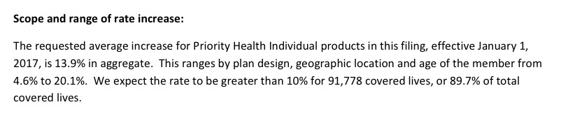 It should be noted, however, that last year, "Priority Health Insurance Co." had only about 1/10th as many enrollees as "Priority Health". If that ratio holds up this year, that should only be around 9,000 people, which is unlikely to skew the statewide average up or down by much.