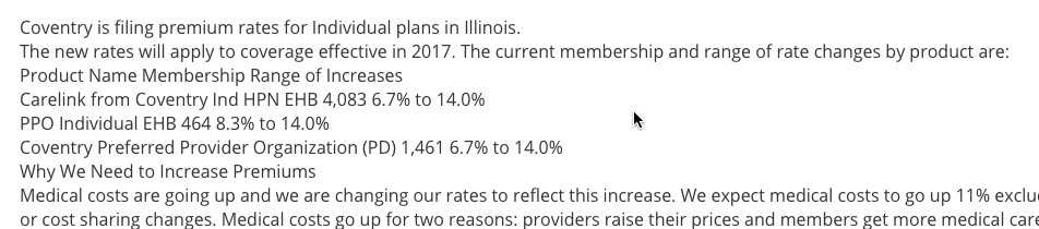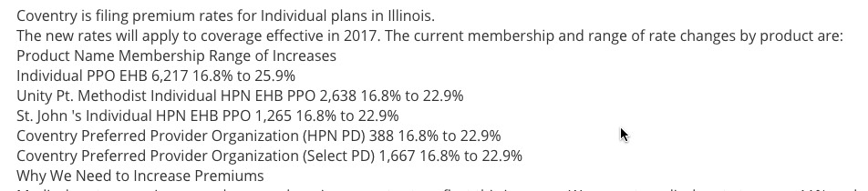 The Illinois individual market was recently rocked by news that yet another ACA-created Co-Op, Land of Lincoln Health, has gone belly-up, leaving a total of 49,000 people scrambling to find new coverage, on top of UnitedHealthcare announcing that they're bailing out of dozens of states including Illinois next year. On the plus side, Illinois is also adding a carrier in the form of Cigna..at least to the greater Chicago area.