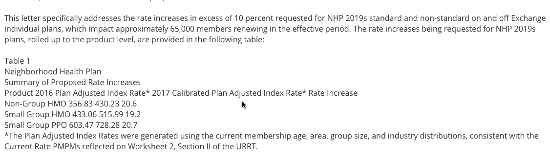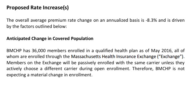 This is a good thing, too, because, like New Hampshire, most of the carriers offering indy policies in MA didn't provide their actual current enrollment data in their filings; only 3 out of 11 did so. For the remaining 8 carriers, I'm using the latest exchange enrollment numbers to calculate the relative market share for weighting purposes.