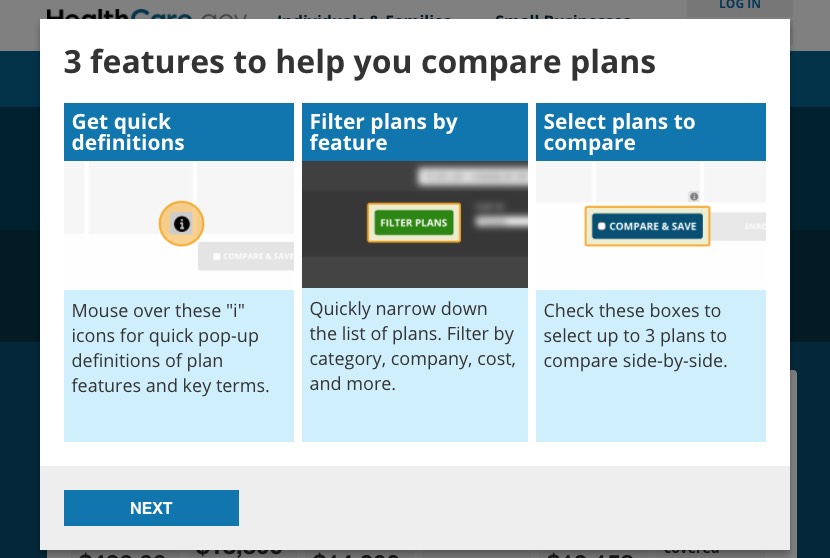 They've also added a new pop-up which lists the average premium and total costs for all plans by each metal level as a guide: