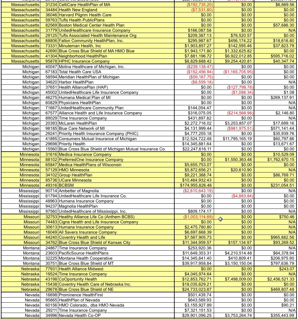 They also provided the dollar amounts for select major carriers, along with the national tally, which I've compiled into a table below: