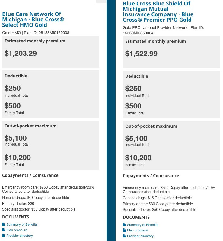 Thanks to the new Network Lookup Tool introduced last year, we plugged in each of our doctors, hospitals and prescription drugs and were pleasantly surprised to discover that they're all covered within the network covered by BCBSMI's HMO division (Blue Care Network).