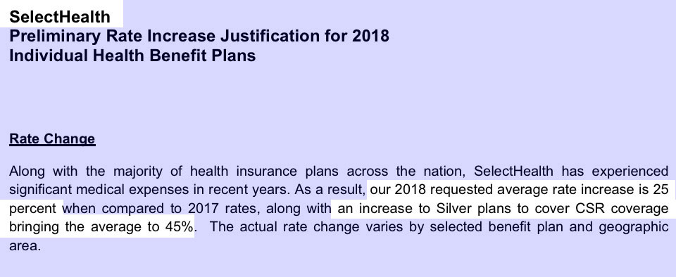 The first bullet point is a bit confusing; it makes it sound like the "20% savings" would be across all metal levels, but the rate hike table and text below it clearly indicates that the 20% only applies to Silver plans. They've already provided the weighted average including the full #TrumpTax effect (38% overall), so that just leaves figuring out what rates would be without the CSR factor.