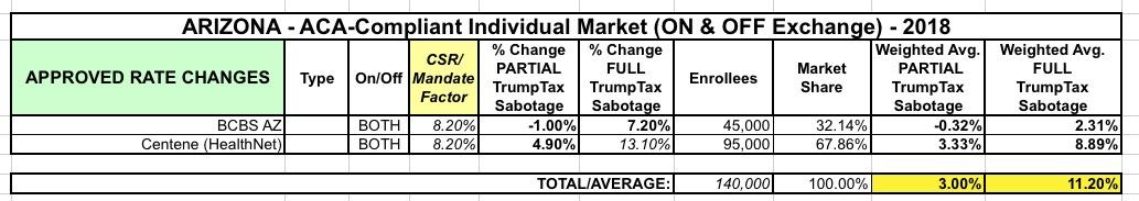 At the time I didn't know what Centene/HealthNet was asking for (they're the sole carrier in the 2 remaining AZ counties), but thought that BCBS had the lion's share of the market anyway so assumed that Centene's request probably wouldn't move the needle much. Since then, however, I've managed to fill in a few more missing pieces, and also am fairly certain that the approved 2018 rates are now locked in for Arizona: