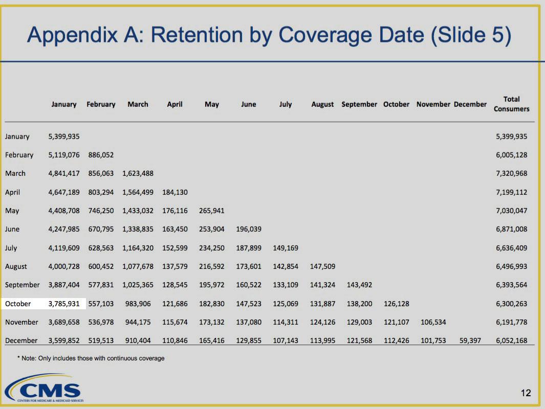 But if the press release is accurate, it's actually even more impressive than that: Remember, the effectuated number refers to the net number of people currently enrolled after both subtracting drop-outs and adding off-season SEP enrollees...but New York is specifically claiming to still have 94% of the same enrollees who were signed up at the end of January.