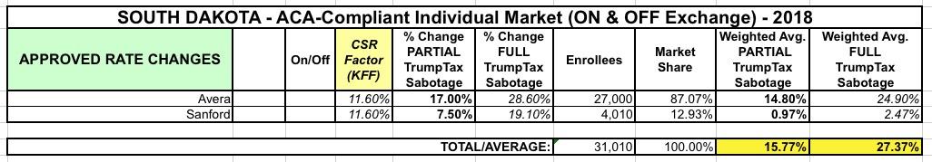 OK, so South Dakota is pricing their policies assuming CSRs will continue to be paid, averaging around 15.8%. If CSRs aren't paid, around another 11.6 points would have to be added if spread across all metal levels, for roughly a 27.4% average increase: