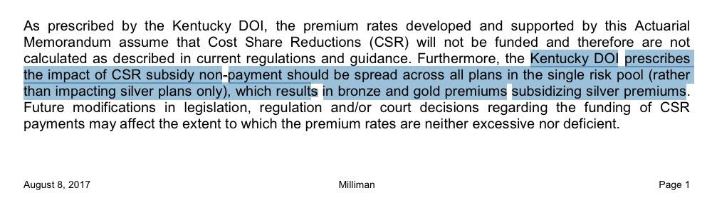 Kentucky: 44.9% approved rate hikes; 1/3 due specifically to CSR sabotage