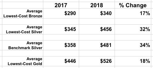 With the 2018 Open Enrollment Period coming up just 5 days from now, it's time to put this to bed: After 6 months of painstaking research and analysis, I've compiled a comprehensive analysis of the weighted average rate changes for unsubsidized ACA-compliant individual market policies in 2018, including both the on- and off-exchange markets. It's already been confirmed by a different analysis by healthcare consulting firm Avalere Health, which used a completely different methodology to arrive at the exact same conclusion: The national average increase is between 29-30%, ranging from as low as a 22% average premium drop in Alaska (thanks to their successful reinsurance program) to as high as a painful 58% increase in Virginia.
