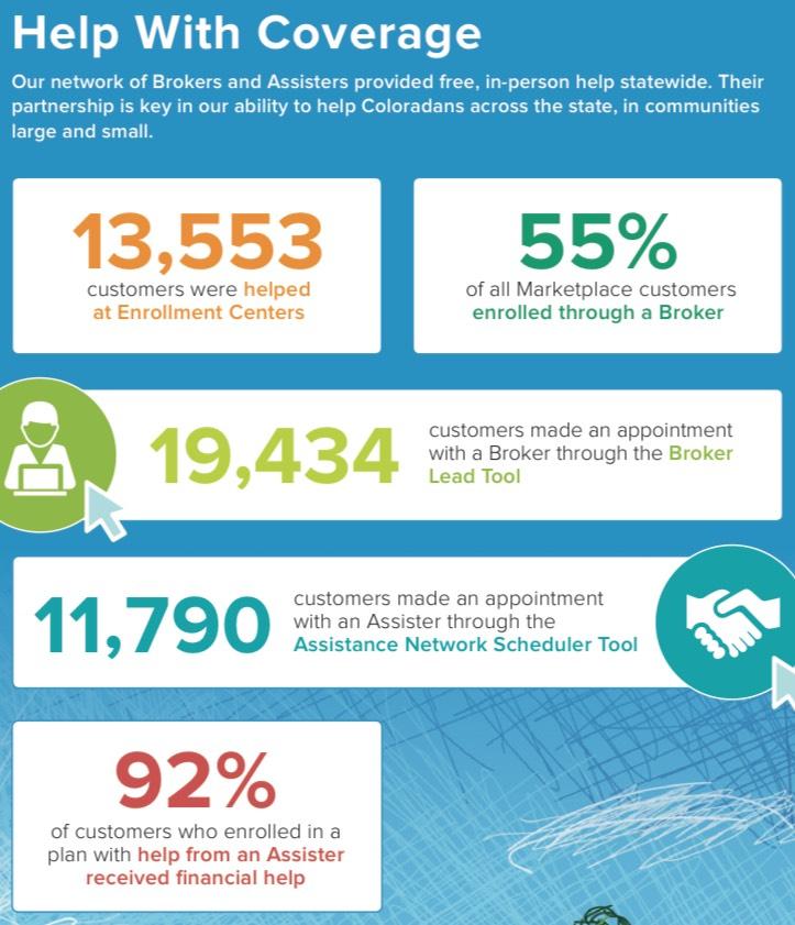 We released our End of Open Enrollment report this week, our most detailed look at the impact we are having across Colorado. This year, you will see that more of our customers are receiving help through the Advance Premium Tax Credit – 69 percent, compared to 61 percent last year – and the average level of monthly tax credit help climbed to $505 from $369 last year.