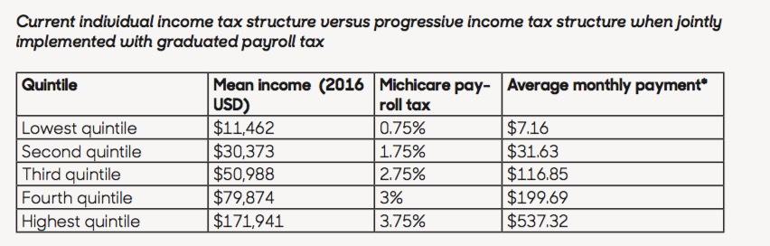 One important (and controversial, among healthcare wonks) item: Like Bernie Sanders' national Medicare for All proposal, under Michicare there would be no cost-sharing of any sort:
