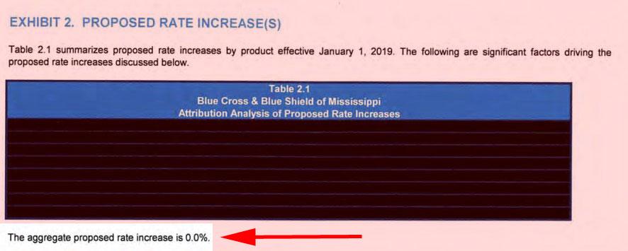 Mississippi is pretty easy: Only two carriers. I have no idea what their relative market share is (the enrollment data along with a lot of other stuff is redacted in their filings), but in this case it really doesn't matter because both of the carriers are requesting nearly identical rate changes anyway...which is to say, just about no change whatsoever.