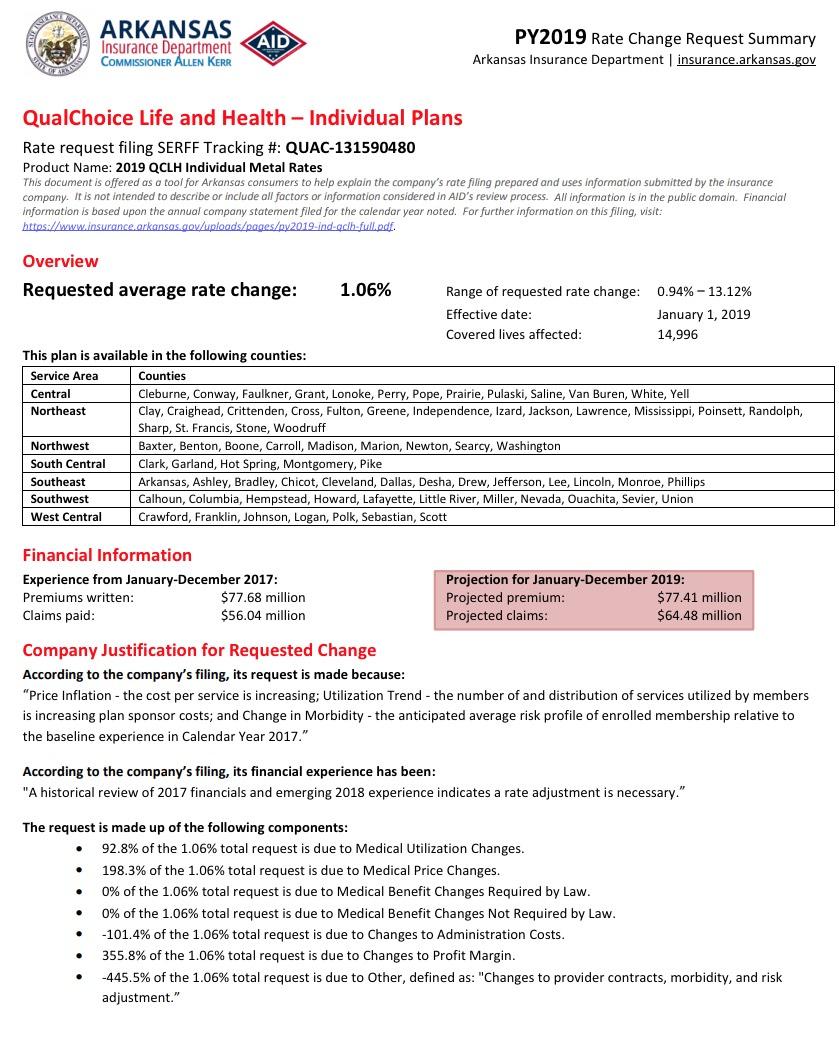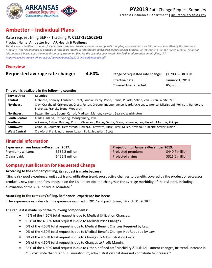 With the deadline for submitting 2019 rate filings having passed a week or so ago, the approved rates from the various state insurance regulators have been popping up left and right. Today I took a look at the Arkansas Insurance Dept. website and sure enough, they've posted the approved filings for all 4 carriers on the individual market (as well as the small group market).