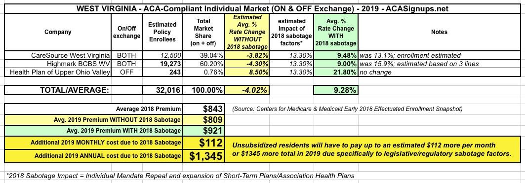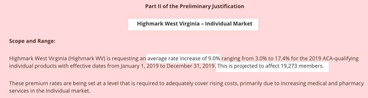 West Virginia's requested average rate increase was among the highest in the country for 2019--a weighted average of around 14.9%.