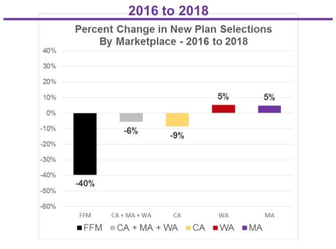 • The report examines the impact that federal and state actions have had on state-based marketplaces and the federally facilitated marketplace (FFM).