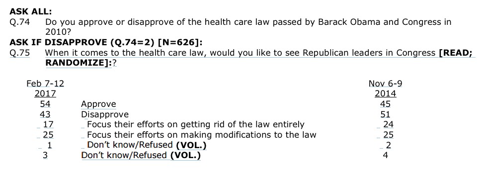 UPDATE 2/24/17: The Kaiser Family Foundation just released their latest monthly survey and found similar (if less dramatic) results: