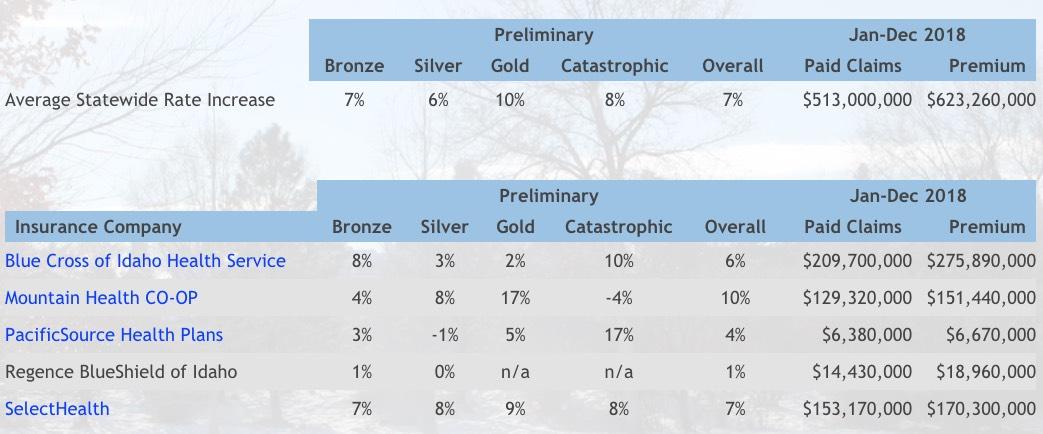 Idaho: *Preliminary* avg. 2020 ACA rate changes: 7.0% increase