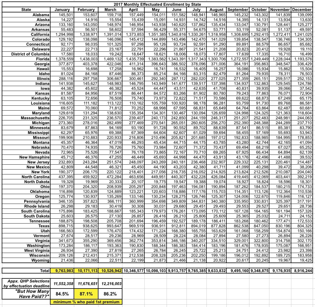 Ffor several months, conspiracy theories abounded about how many of those who selected Qualified Health Plans (QHPs) from the ACA exchanges actually followed through and paid their first monthly premium, thus actually being enrolled in effectuated policies.
