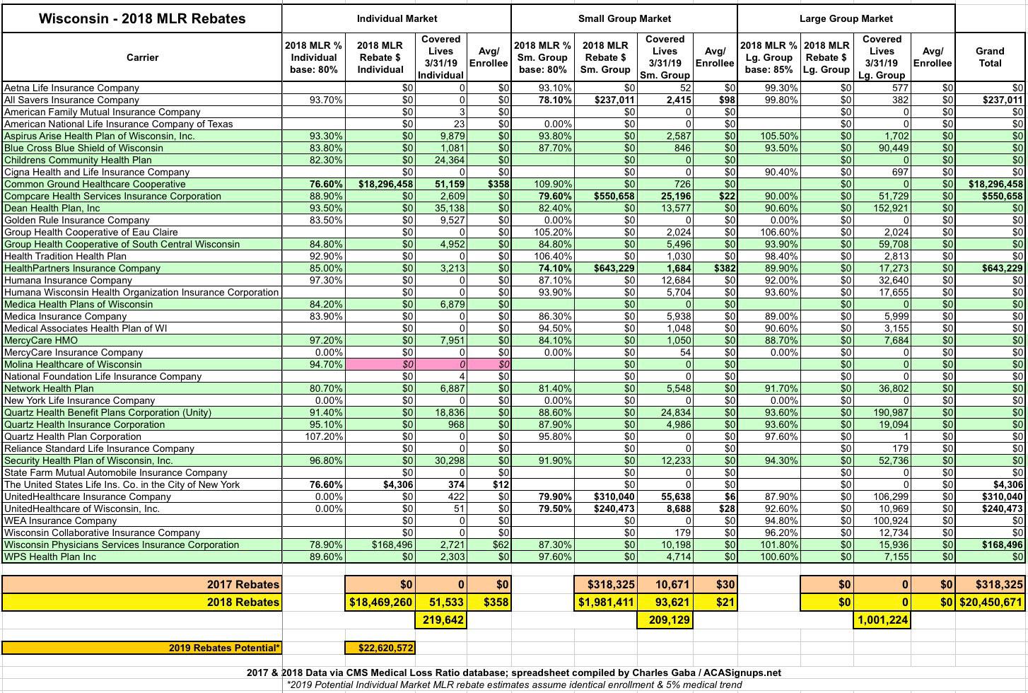 Wisconsin: 51,000 Common Ground enrollees to receive $18.3 million in MLR rebate checks