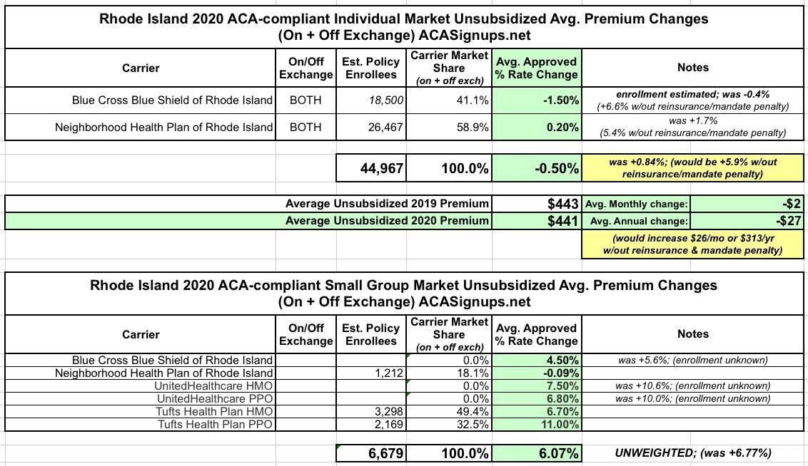 With my big MLR Rebate project finally out of the way, I have a backlog of other write-ups, including several approved 2020 premium rate changes. First up is tiny Rhode Island.