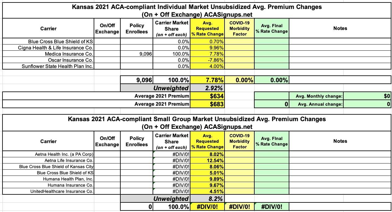 Kansas: Preliminary avg. 2021 #ACA premiums: +7.8% indy, +8.2% sm. group (unweighted)