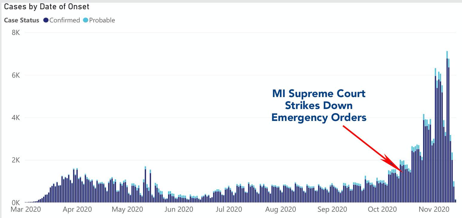 LANSING – Emergency orders Gov. Gretchen Whitmer has issued under the Emergency Powers of Governor Act are struck down, effective immediately, the Michigan Supreme Court said Monday in a 4-3 order that added an exclamation mark to an Oct. 2 ruling.