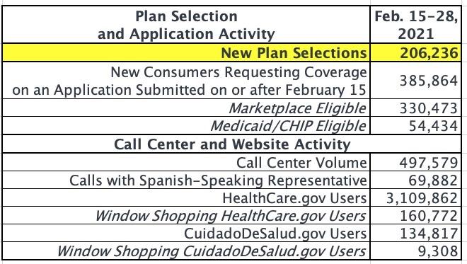 The Centers for Medicare & Medicaid Services (CMS) report that more than 206,000 Americans signed up for health insurance plans during the first two weeks of the 2021 Marketplace Special Enrollment Period (SEP) for consumers in HealthCare.gov States.