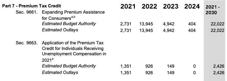 However, it's the increased/expanded ACA individual market subsidies which are indeed very much of interest to me, so let's take a look: