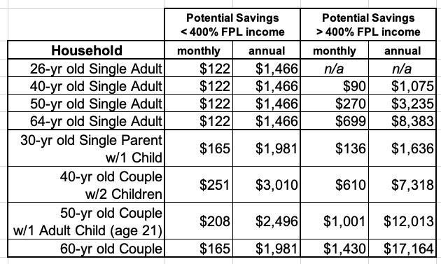 *For 2021 only, those receiving unemployment benefits in any state have their income considered to be 133% FPL, which gives some non-expansion state residents a way of getting decent coverage at an affordable price.