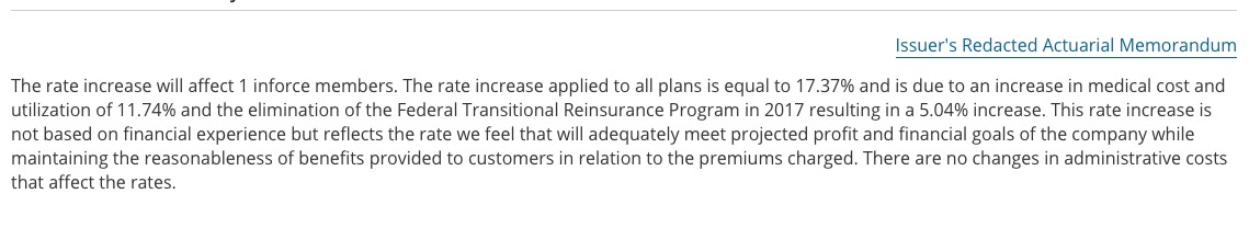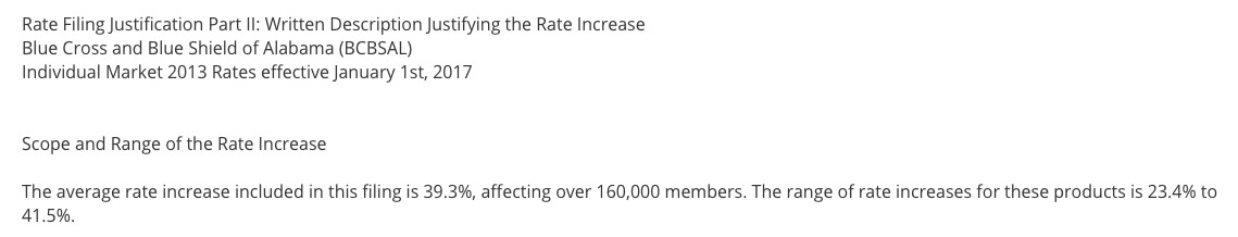 Let's start things off with Alabama...which is pretty easy to do, since there's only 1 carrier even offering policies on the individual market in AL next year, Blue Cross Blue Shield. Both UnitedHealthcare and Humana are pulling out; there's around 15,000 current Humana enrollees and an unknown number covered by UnitedHealthcare who will have to make the move. Technically, "Freedom Life" has also submitted a filing, but as I've noted before, they appear to be a phantom bottom-feeder; their "filing" is basically a placeholder, with no policies really available for purchase.