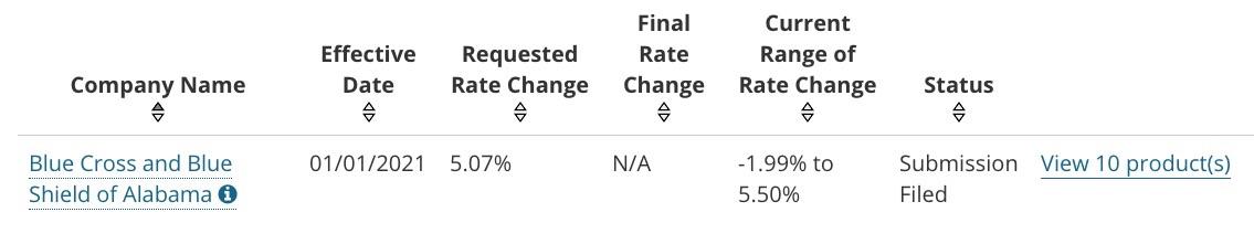 The bad news is that I still can't find any official 2021 rate filings at the Alabama Insurance Dept. website.