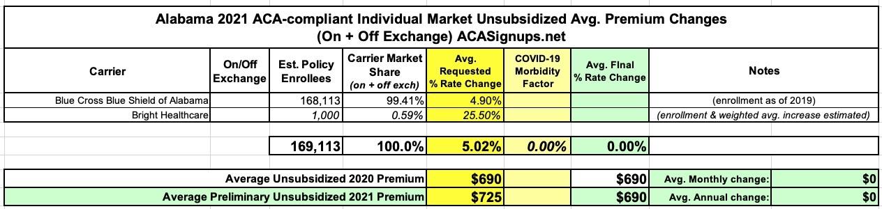 Alabama: Preliminary avg. 2021 #ACA premiums: +5.0% individual (w/caveat); unknown sm. group