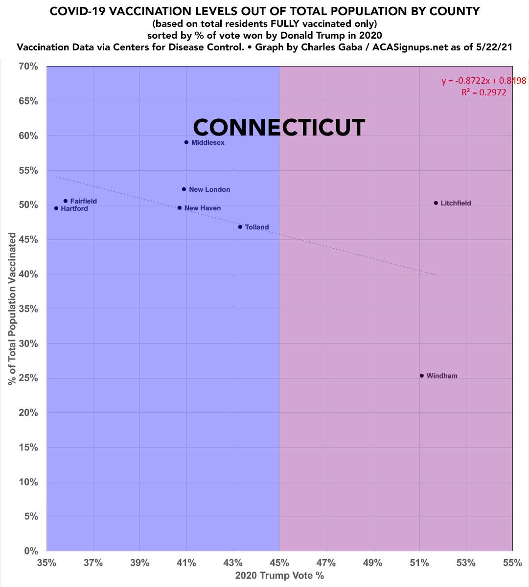Connecticut: #COVID19 vaccination rates by county & partisan lean