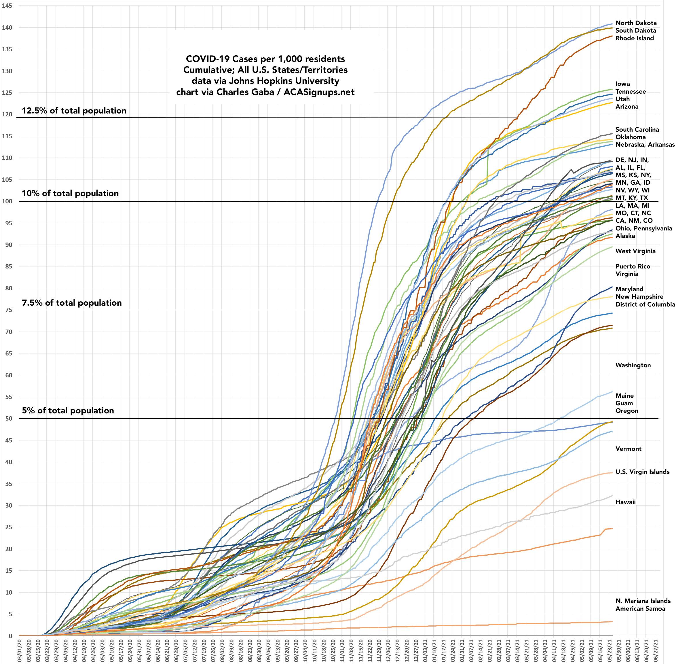 Nearly 1 out of every 7 residents of North Dakota, South Dakota and Rhode Island have tested positive for COVID-19 to date.