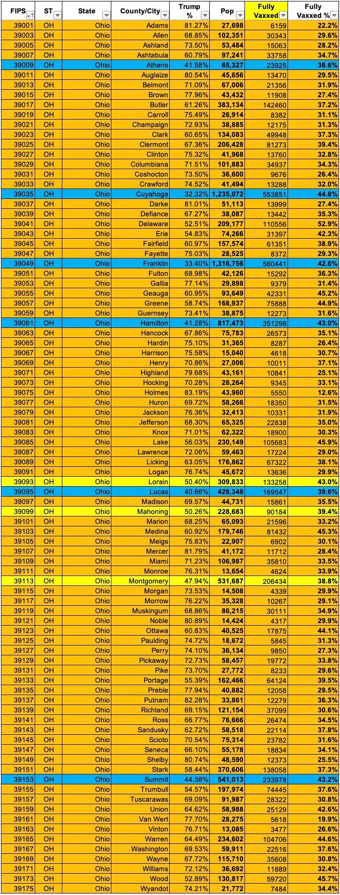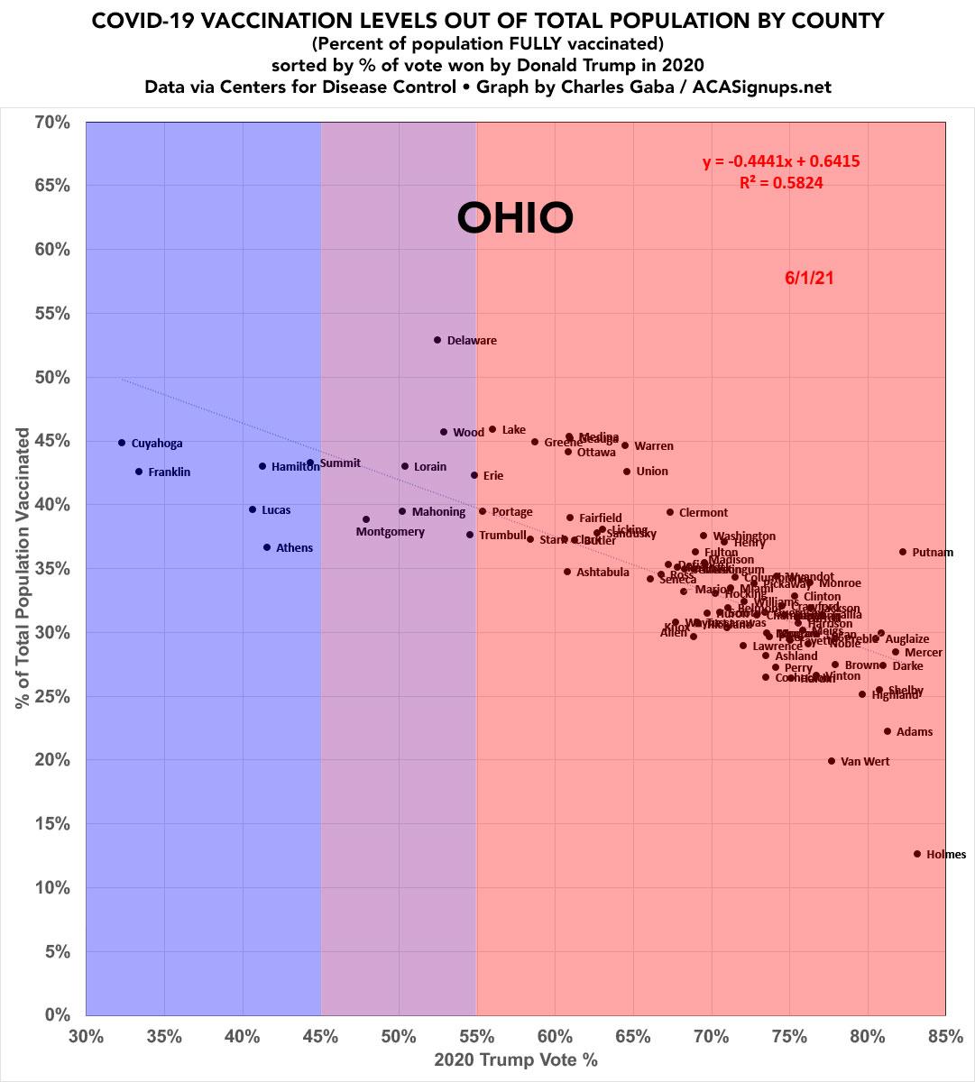 Ohio: #COVID19 vaccination rates by county & partisan lean