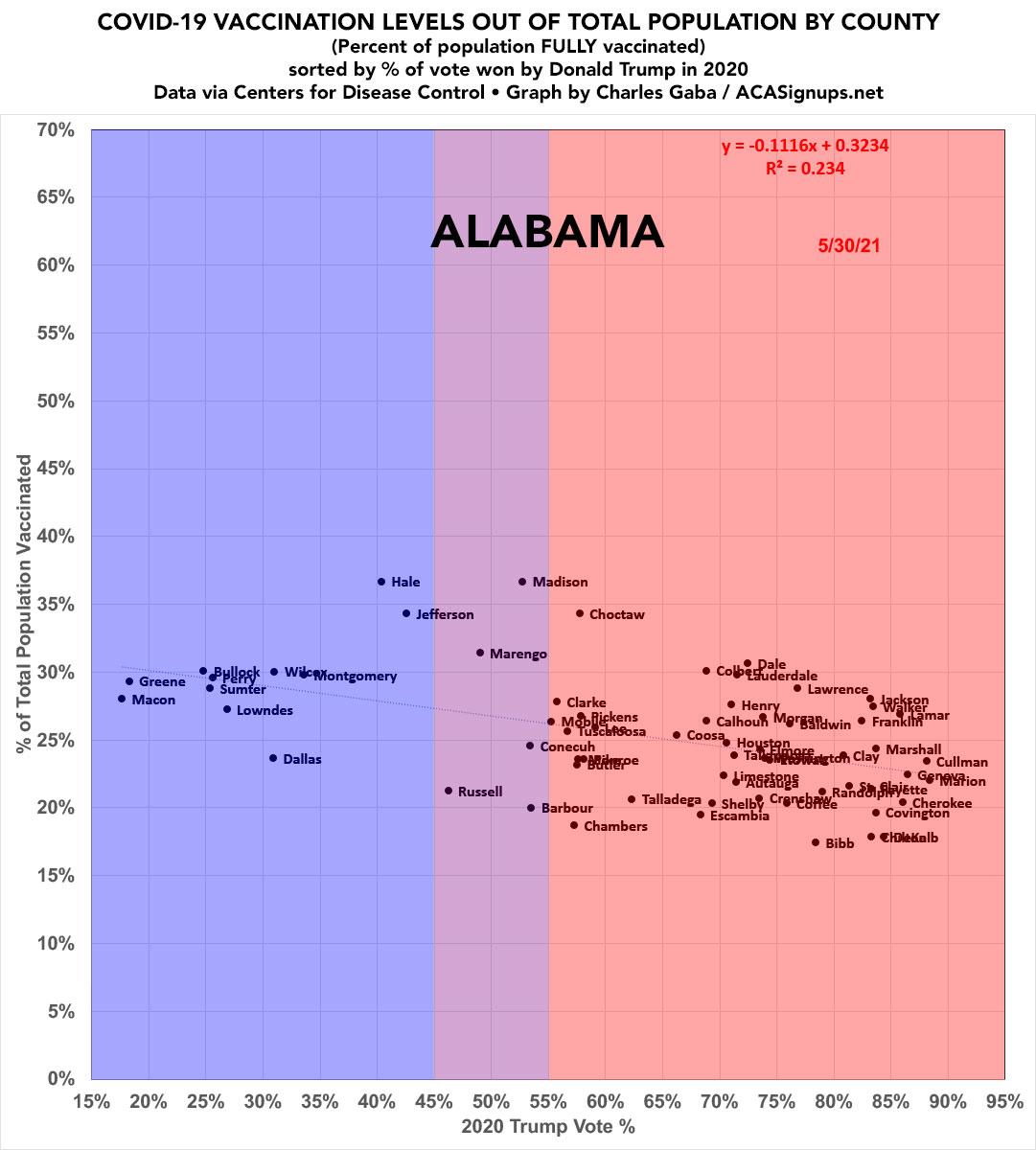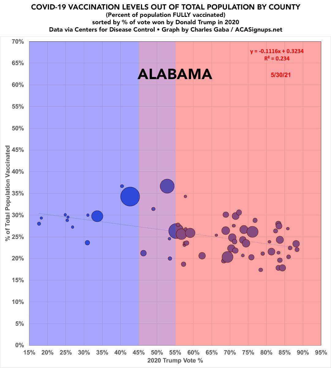 Updated: Alabama: #COVID19 vaccination rates by county & partisan lean