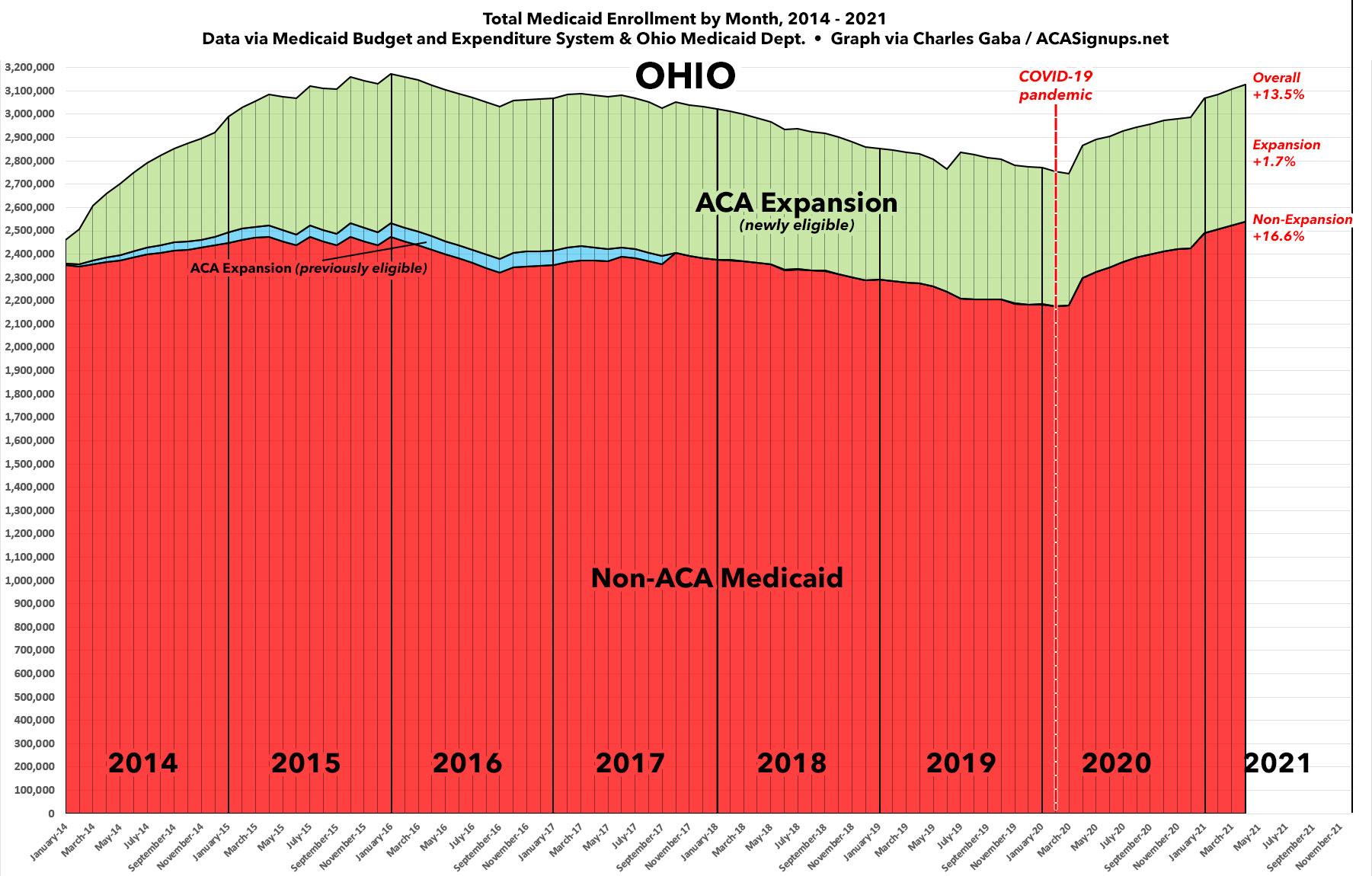 Ohio: Medicaid expansion enrollment reaches 588,000; total Medicaid up 13.5% since COVID hit