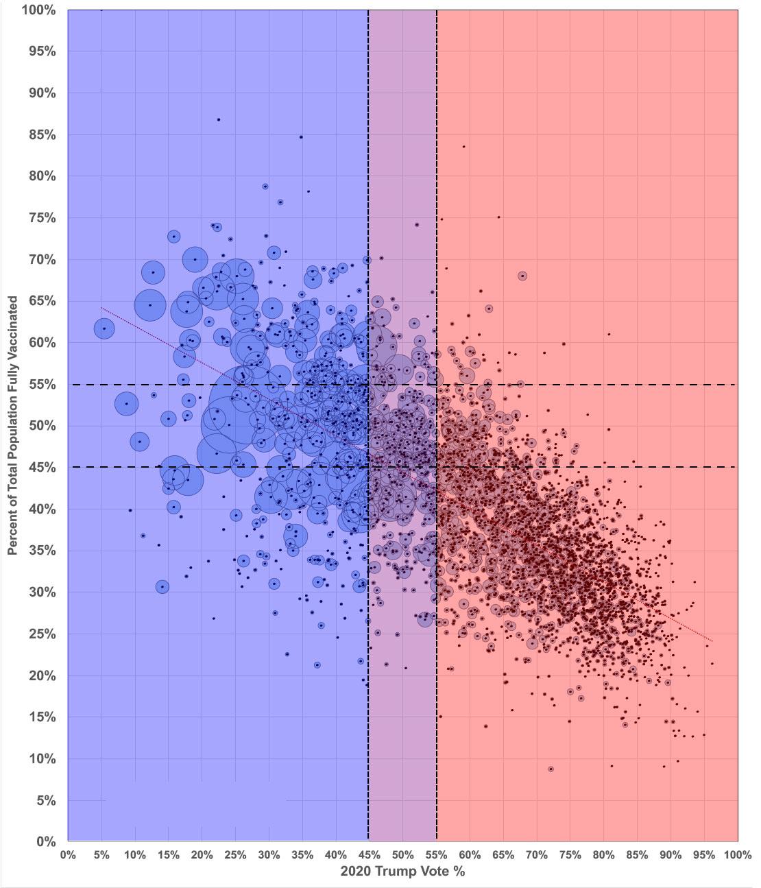 A few weeks ago I posted a look at the county-level COVID-19 vaccination rate outliers...the counties which don't fit the main pattern of heavily-Trump counties having low vaccination rates and heavily-Biden counties having high vaccination rates.