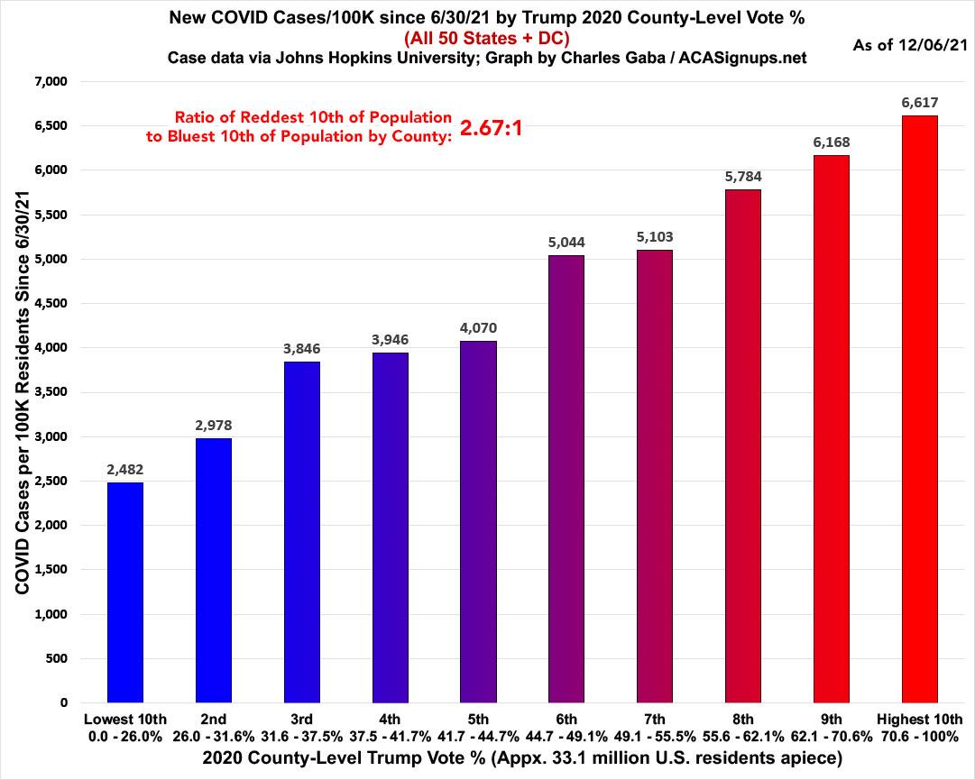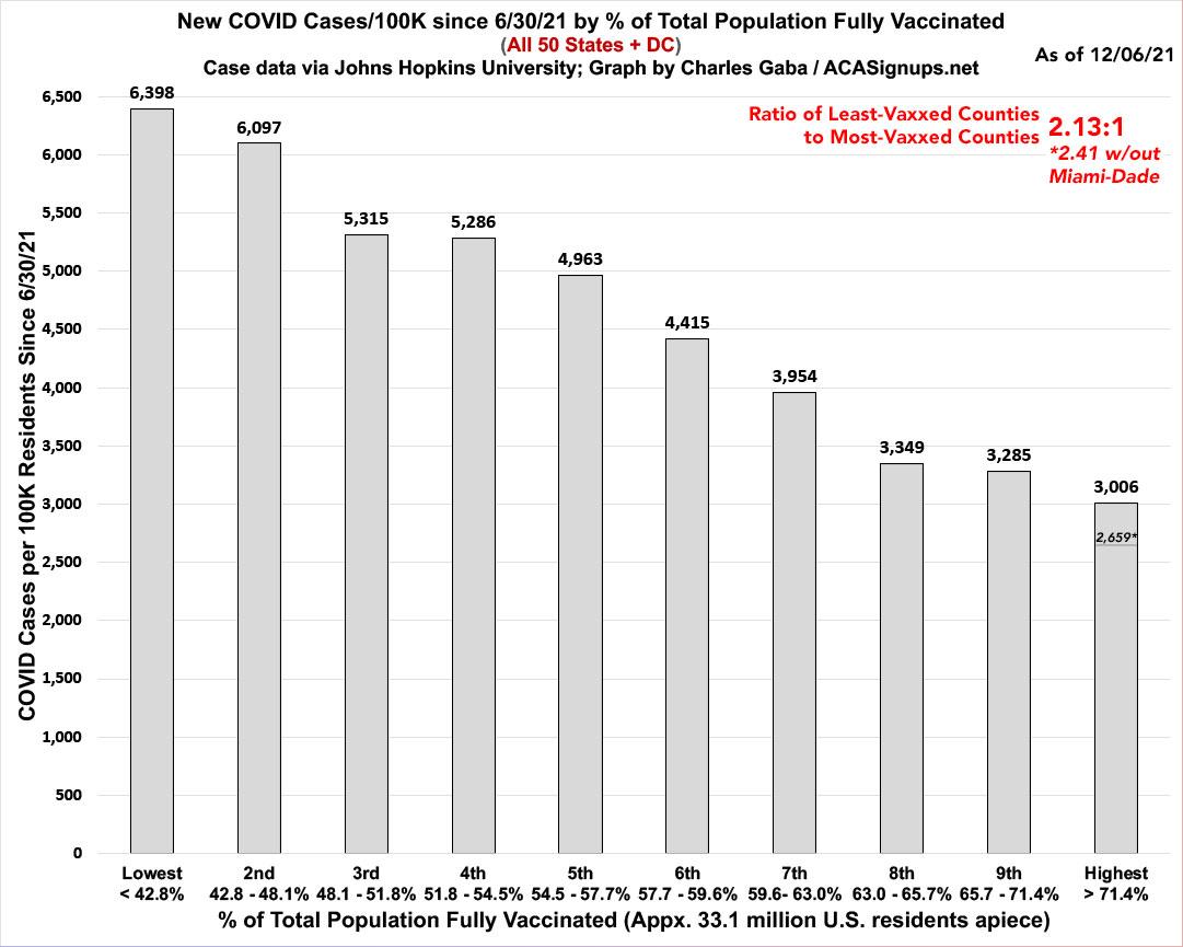As you can see, case rates since June are 2.13x higher in the least-vaccinated tenth of the country than in the most-vaccinated tenth...slightly lower than a few weeks ago.