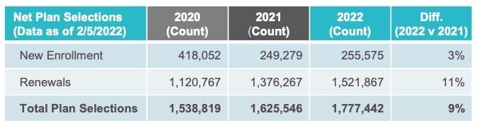 - With the help from the American Rescue Plan (ARP) Special Enrollment Period, 2022 continued a surge of renewals who had signed up in the prior year special enrollment period and did not have to wait to get covered.