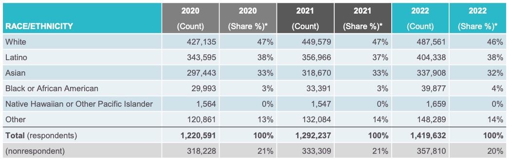 - Enrollment increased among all racial and ethnic groups compared to 2021.