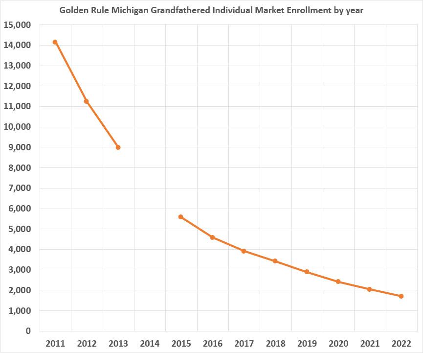 UPDATE: I've also put together the annual enrollment in Michigan's Golden Rule grandfathered individual market plans as well: